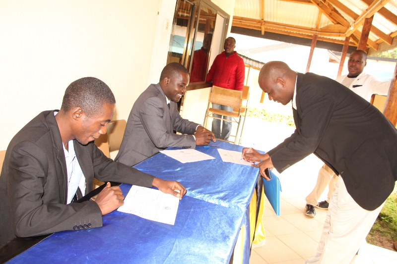 Mwanahabari Lazaro kulia akijiandikisha katika kitabu cha mahudhurio