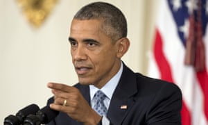 Barack Obama speaks to reporters in the White House: ‘[Putin] doesn’t distinguish between Isil and a moderate Sunni opposition that wants to see Mr Assad go.’ Photograph: Manuel Balce Ceneta/AP