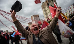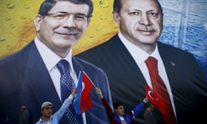 Facebook Twitter Pinterest AKP supporters wave flags in front of and billboards of Erdoğan and Davutoğlu. Photograph: Umit Bektas/Reuters