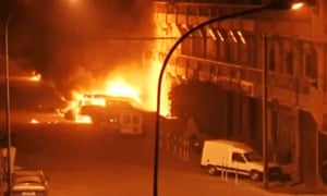 FacebookTwitterPinterest Vehicles on fire outside the Splendid Hotel. Photograph: Reuters Tv/Reuters