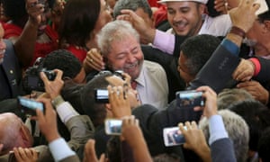 Luiz Inácio Lula da Silva is greeted by supporters after his appointment as chief of staff to president Dilma Rousseff. Photograph: Adriano Machado/Reuters
