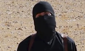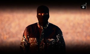 FacebookTwitterPinterest Masked Isis jihadi with a British-sounding accent who threatens attacks in the UK in the name of Isis. Photograph: Supplied