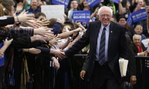 FacebookTwitterPinterest Bernie Sanders greets supporters before speaking at a rally in Michigan on Saturday. Photograph: Carlos Osorio/AP